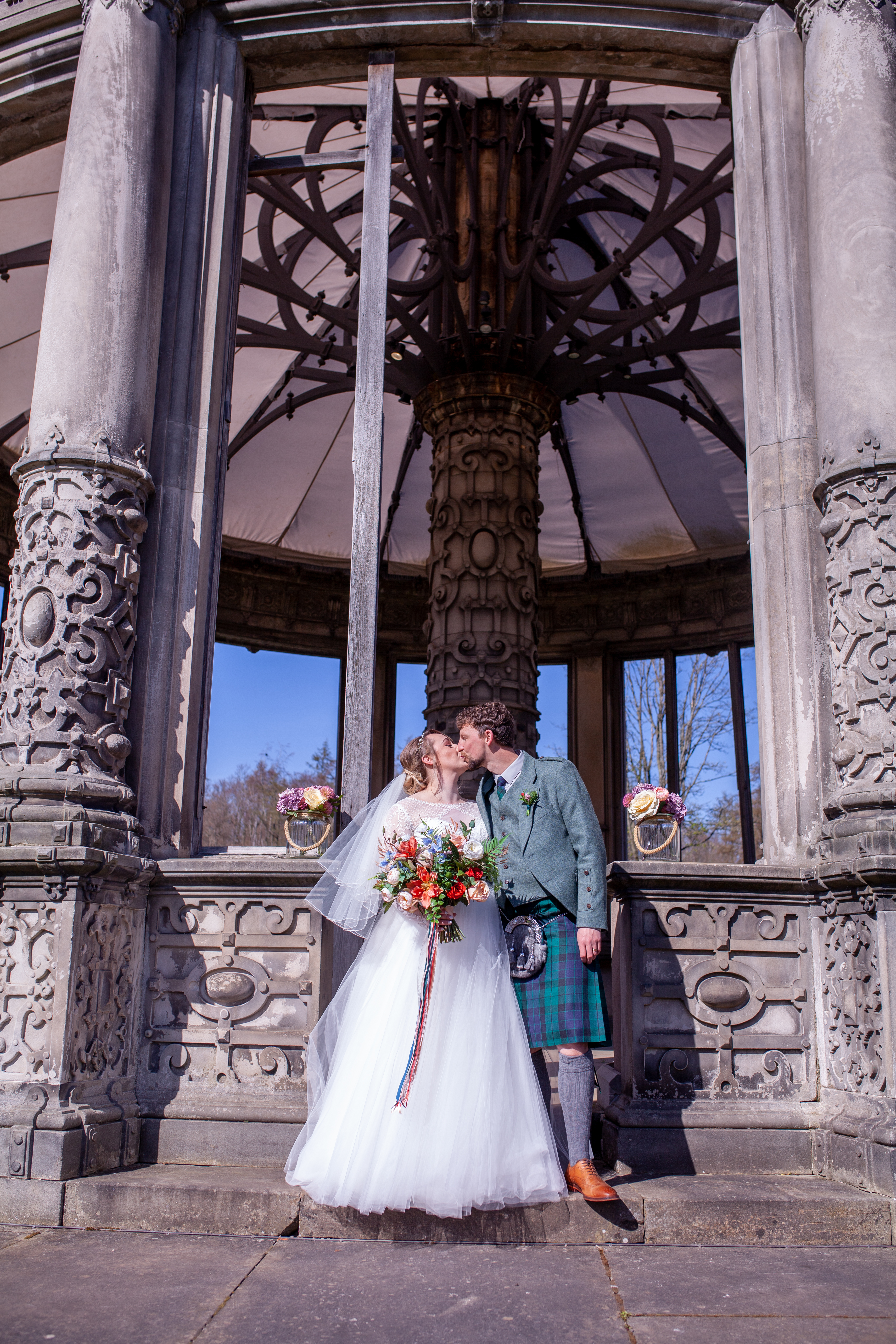 Their sweet, joyful ceremony took place outside the stunning Orangerie at Dalkeith Country Park with two of their close friends as witness, and all other family and friends very much included through an online recording.