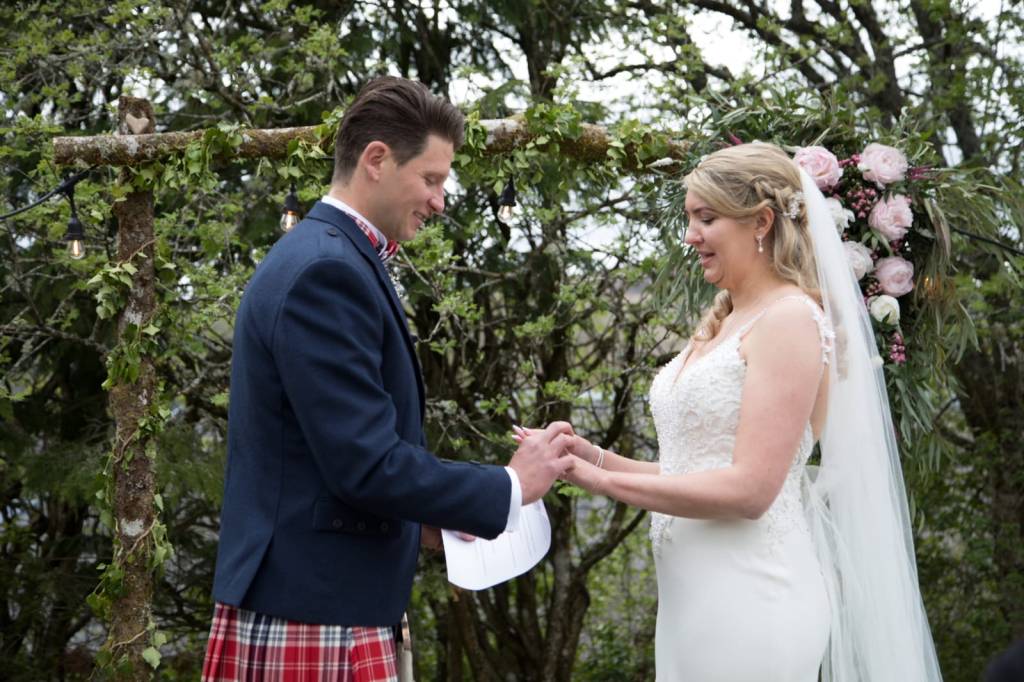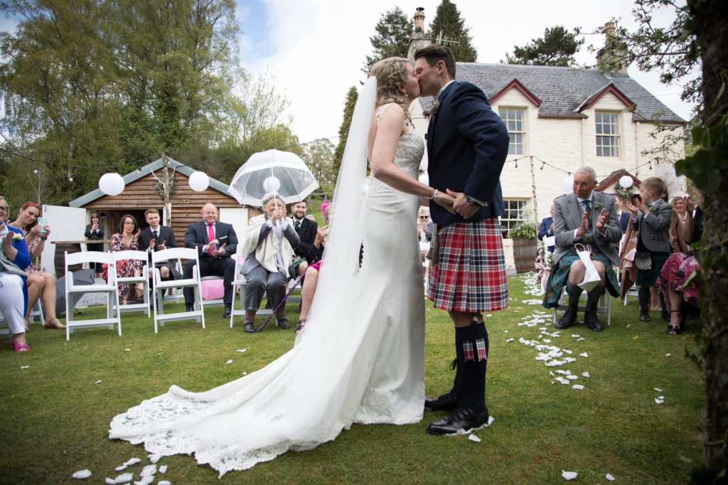 They then sealed their Marriage Vows with a unique triple knot Handfasting. The mother of the bride did a fantastic job tying three knots; symbolising the bride and groom’s individual and shared vows, and the joining of their families and countries.