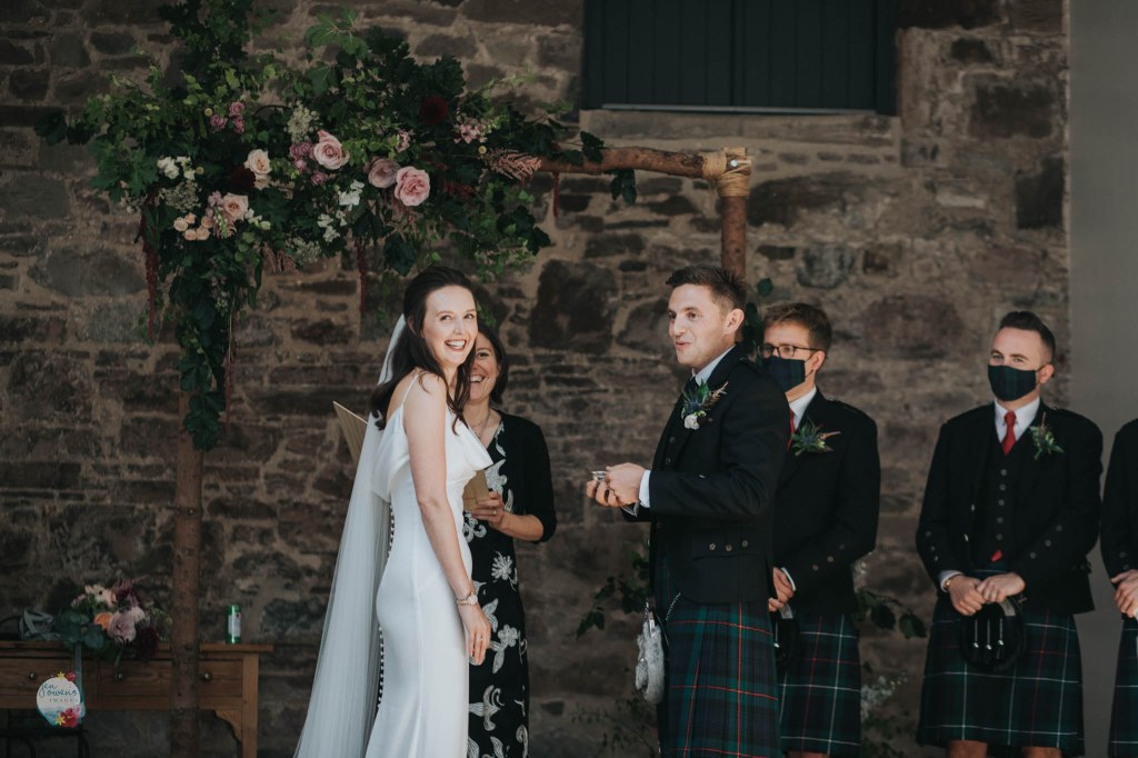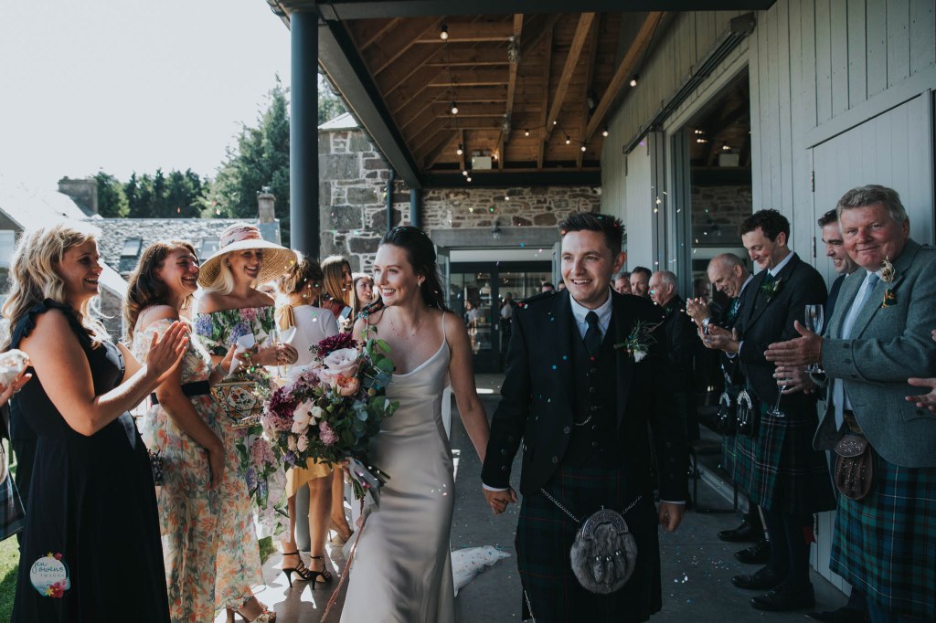 In the stunning steading overlooking the Perthshire hills, we heard the romantic story of how Michelle and John fell for each other across the cash register at Marks & Spencer’s where they were both working summer jobs. Having both grown up in Aberdeen and sharing many mutual friends, it was surprising that John and Michelle hadn’t met before they did. They bonded over their emo hair cuts and a mutual love of travel, and in Michelle’s words, “as soon as we met, there was instant chemistry.”
