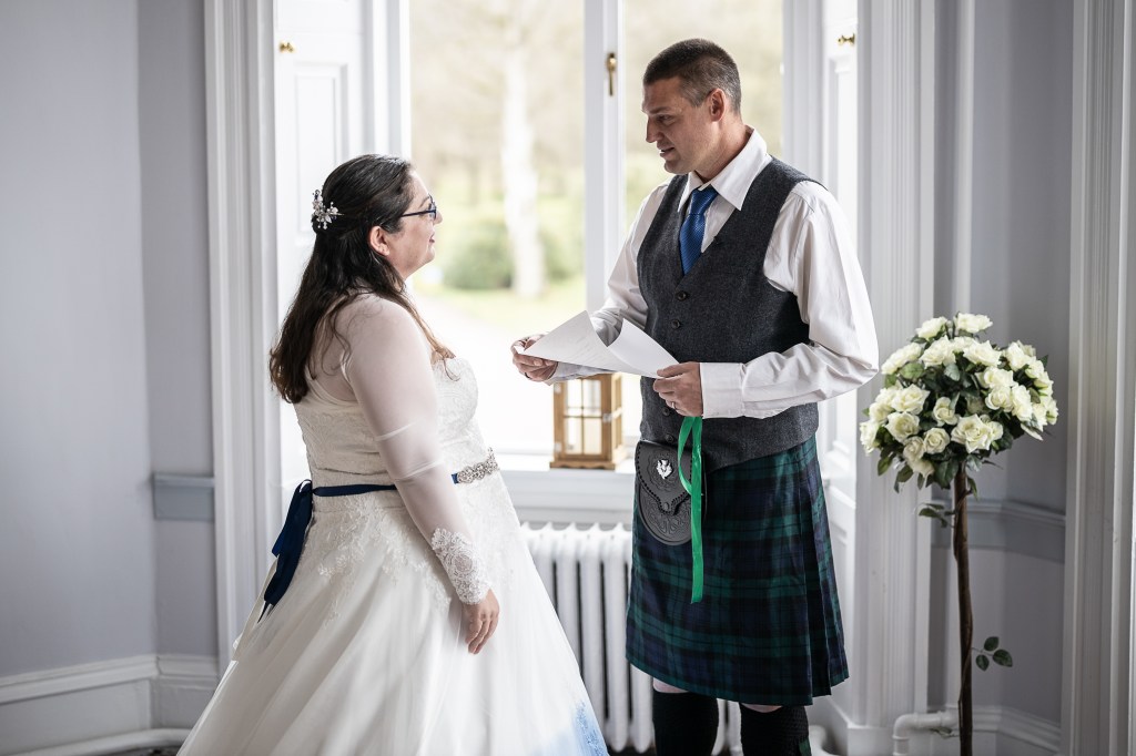 Dan and Shawnie’s Vow Renewal was a celebration of 15 years of marriage, 20 years together, and many joyful years of family life. Their ceremony, in a quiet room at the historic Shieldhill Castle, was gentle, loving and relaxed. It was such a pleasure to hold space for these two high school sweethearts who have been through so much together and who clearly have a great time whatever they do.