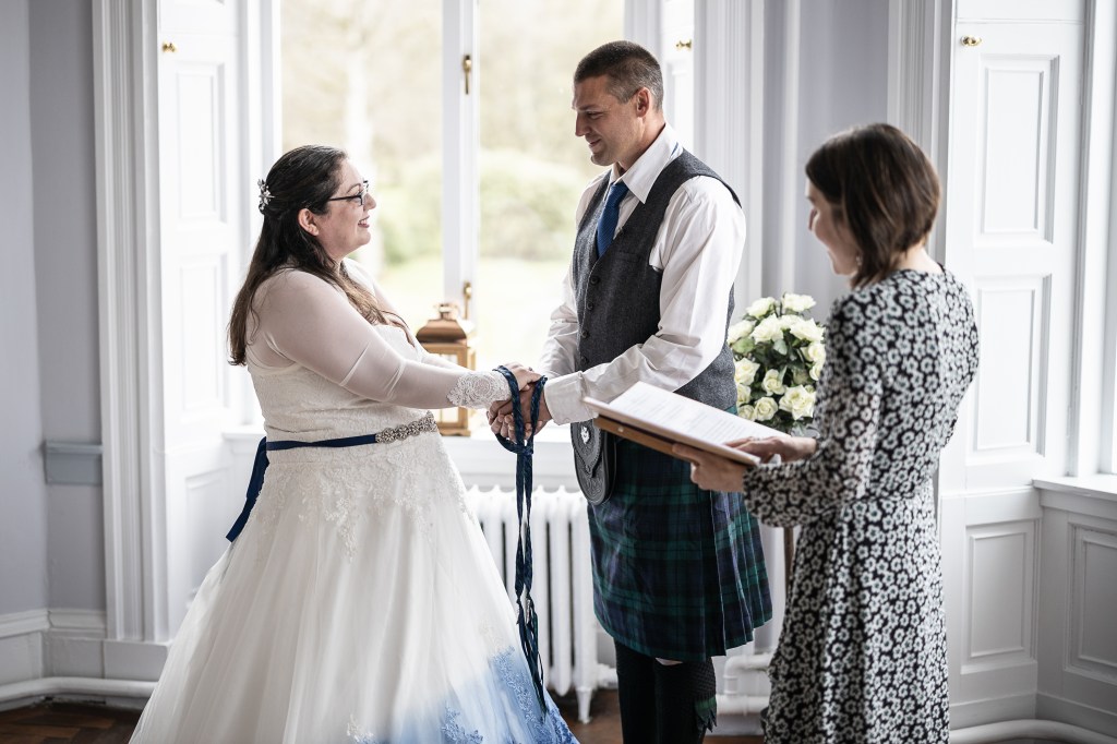 Shawnie and Dan affirmed their love with a traditional Handfasting, the plaited ribbons symbolising their love and connection and their family.