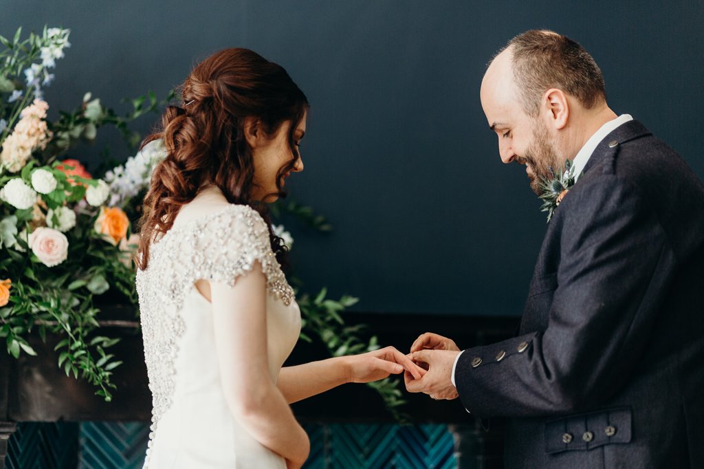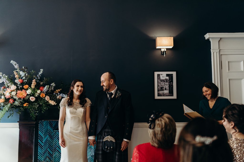 Laura and Phil’s ceremony in the heart of Leith was romantic, funny, and thoughtful. Their wish was for a “no fuss, simple, romantic” ceremony with a close circle of their friends and family that spoke of their love and togetherness.