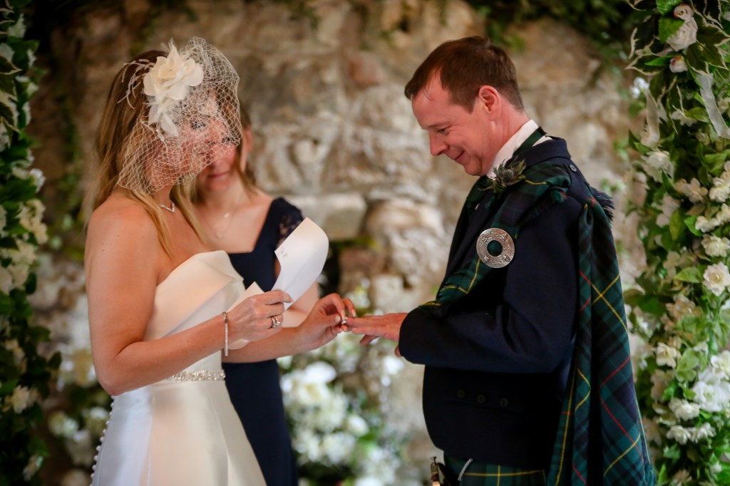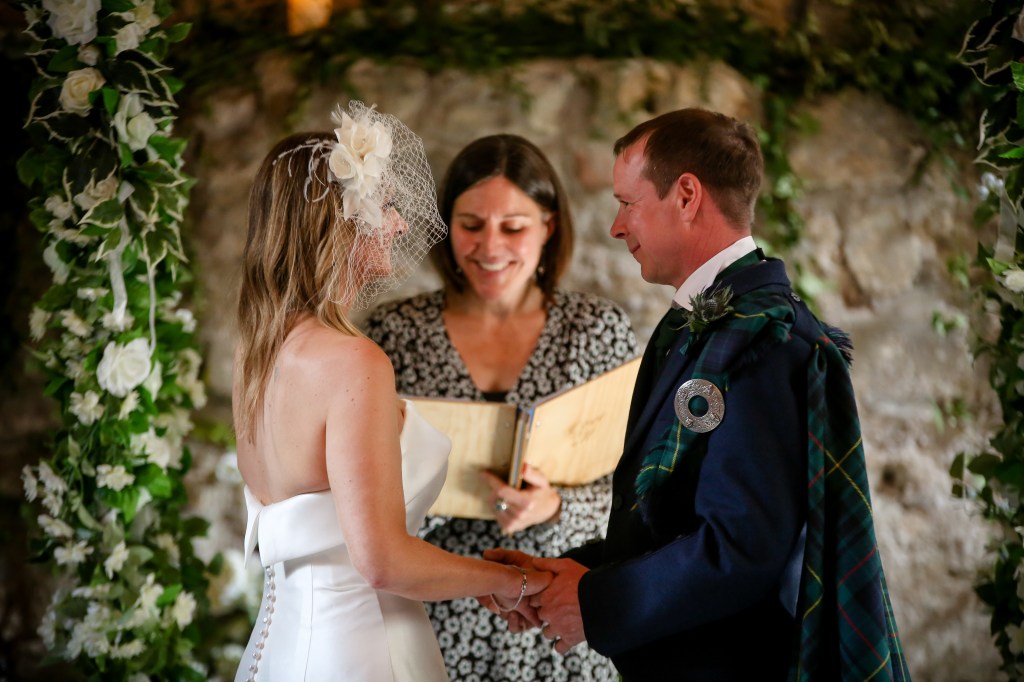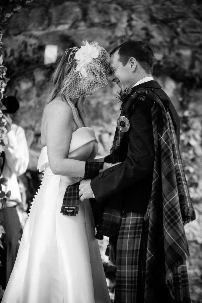 Their ceremony took place in the historic 17th century Old Kirk at Glencorse House near Edinburgh and, as was their wish, it was so much fun – with a fair bit of hilarious and welcome banter from their loved ones.