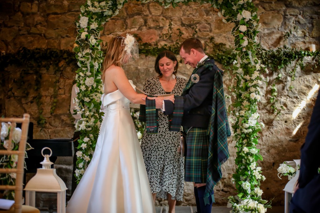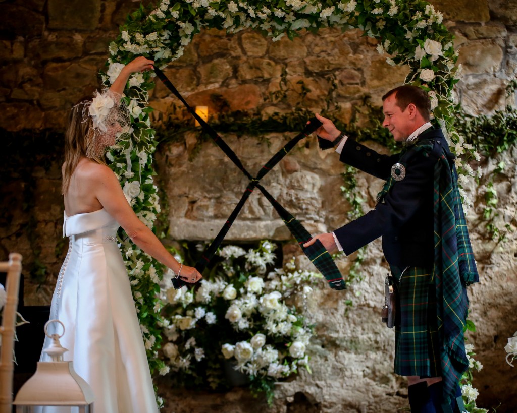 Karen and Kenny’s Handfasting ceremony last August represented a first for me with the inclusion of the Jumping of the Besom. While this is a controversial ritual for many due to its historic links with slavery, for Kenny and Karen it felt important to include this ancient ritual in honour of Karen’s deep and long held connection to Wicca.