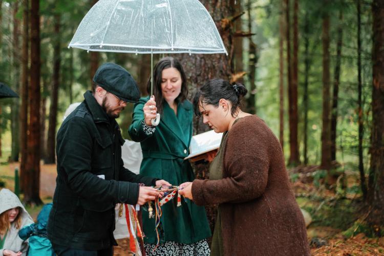 We combined two beautiful Celtic traditions: a Handfasting to symbolise love, loyalty and connection, and the tying of a Cloot to make a wish or send a prayer or blessing to the individual or family being honoured.