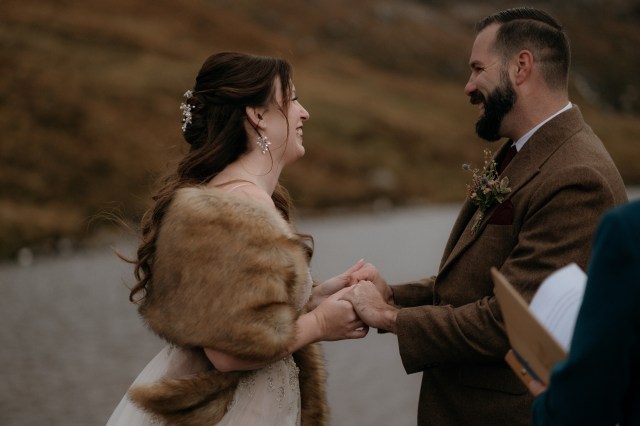 Ellison and Shannon travelled to Scotland from the USA to make their life promises to each other on the exact day of their seven year anniversary. From their first hockey game date to Ellison proposing to Shannon after an epic three-peak, six-hour hike in North Carolina, the cornerstones of their relationship have remained the same – planning adventures (big and small), and making each other laugh. So, it felt apt that Shannon and Ellison should choose a wild and windswept location in a remote pocket of the Scottish Highlands for their romantic, heartfelt ceremony.