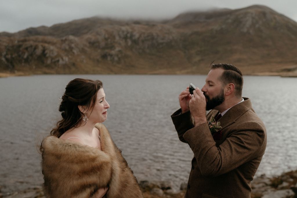 On this Midwinter’s weekend, as we all relax into the festive season, it’s been a joy to revisit Ellison and Shannon’s autumnal wedding ceremony in the moody and breathtakingly beautiful Assynt landscape.