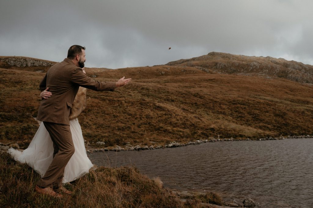 After the ceremony, Ellison and Shannon returned one of their Oathing Stones to the loch. Then they shared several beautiful hours exploring the Assynt countryside together before enjoying a delicious meal at the Kylesku Lodges.