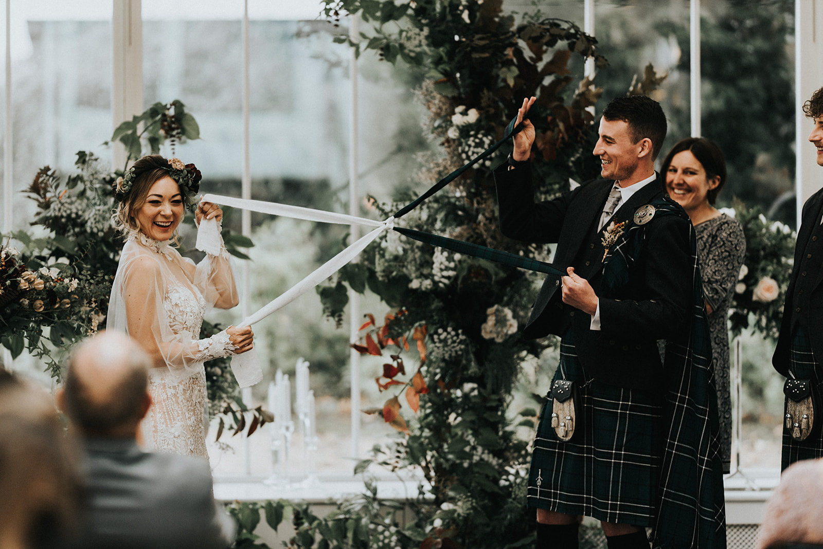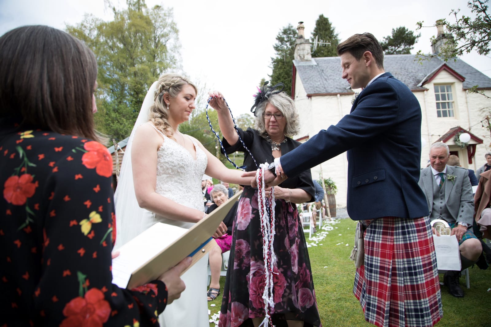 Then Rebecca and Michael made their personal vows to each other and gifted rings, before sealing their Marriage vows with a traditional Handfasting. They tied an Eternity Knot with two swathes of tartan representing their two families.