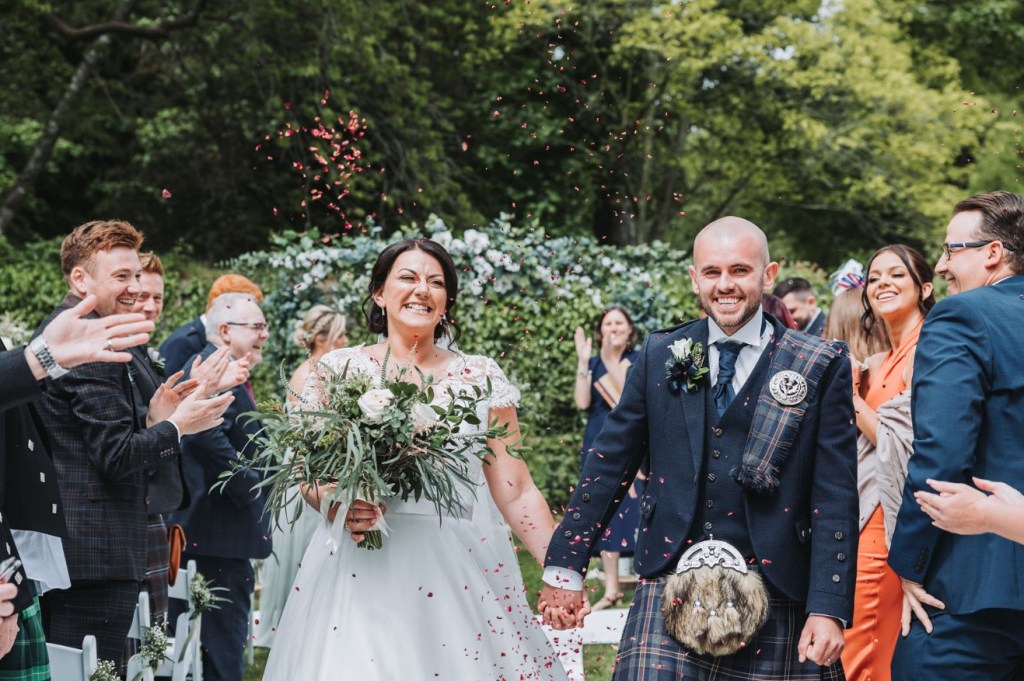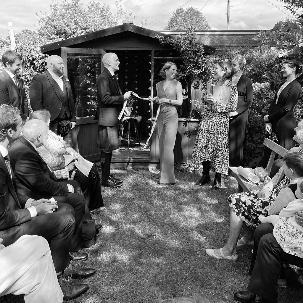 Sarah and Adam’s Wedding Ceremony in their beautiful garden in Aberdeenshire on 3rd August 2024