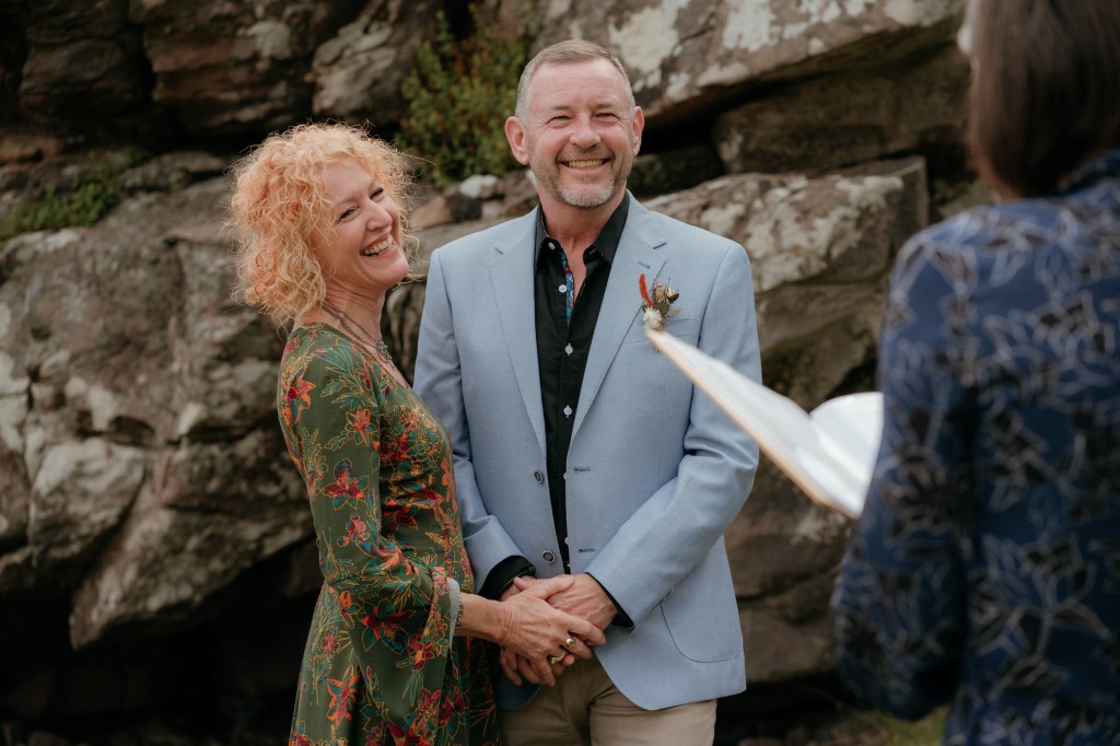 From our very first email and video call with Onie, she struck the perfect balance of making us feel at ease, whilst also making sure our elopement was as special and memorable as possible. Onie crafted our ceremony into a beautiful celebration of our relationship and the joining of two families, and on the day she provided a caring and patient environment – even as the rain came down sideways! Onie always went the extra mile, speaking with our registry office to make sure everything was in order, and braving the elements to give us our stunning location ceremony. We are eternally grateful to have had Onie as our celebrant.