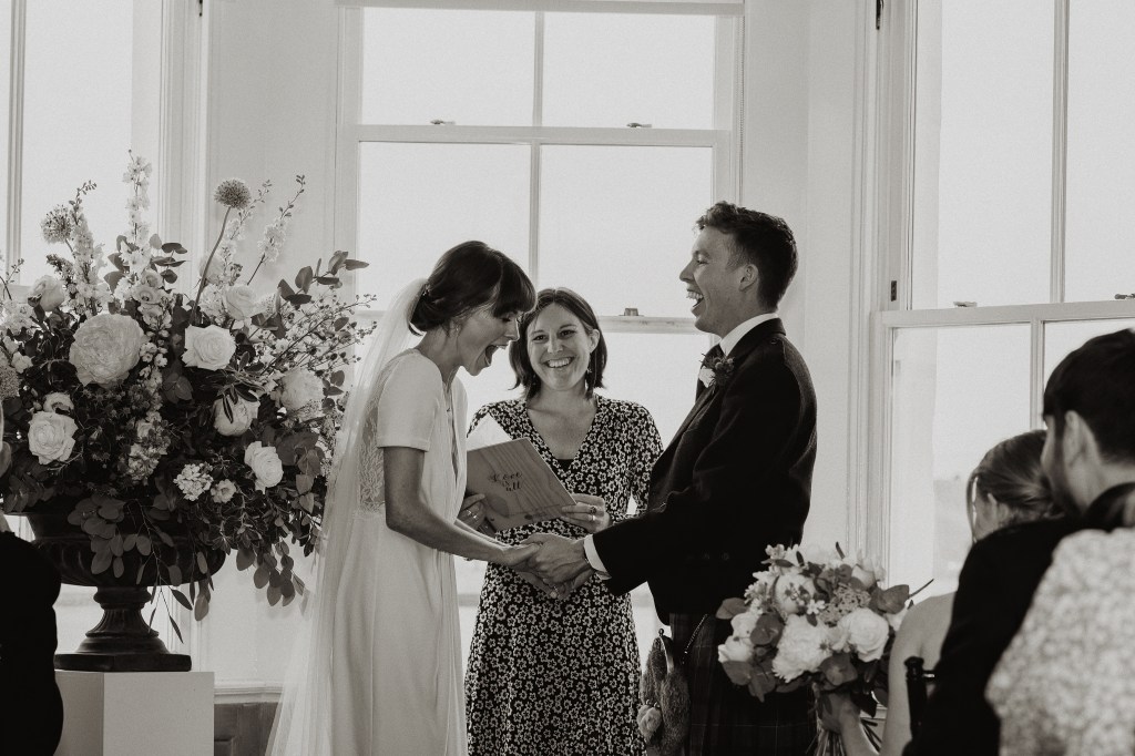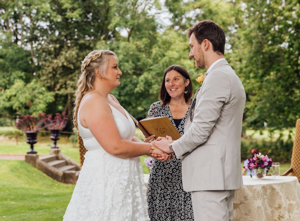 “From initial enquiry to our wedding, working with Onie was nothing but seamless. She worked with us to create a ceremony that reflected what we wanted, giving plenty of suggestions and guidance throughout. Due to the pandemic, we didn’t actually meet until the day of our wedding but it felt like we had and if we had any questions, she was just a phone call or email away.