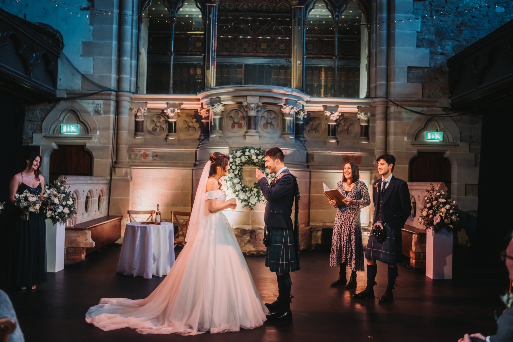 Callum and Megan’s Wedding Ceremony at Cottiers in Glasgow on 24th November 2023