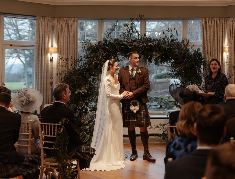 Maryam and Elliott’s Wedding Ceremony at Cairns Farm Estate, Kirknewton on 17th February 2024